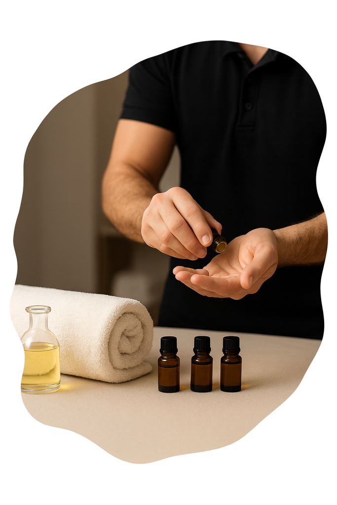 Aromatherapy massage is a gentle, relaxing treatment that uses warm oils blended with essential aromas. The oils are chosen based on your needs, whether you want calm, better sleep, or more energy. The movements are light and steady, helping the body relax quickly while the scents work through breathing.